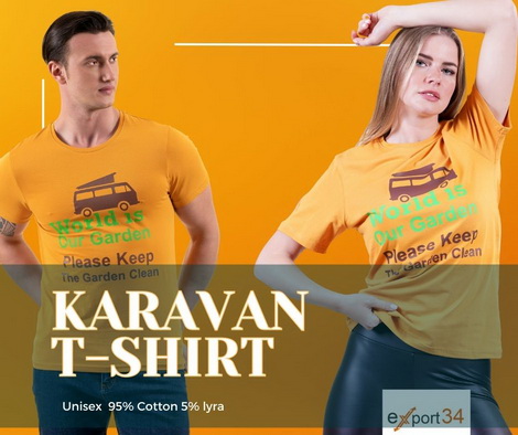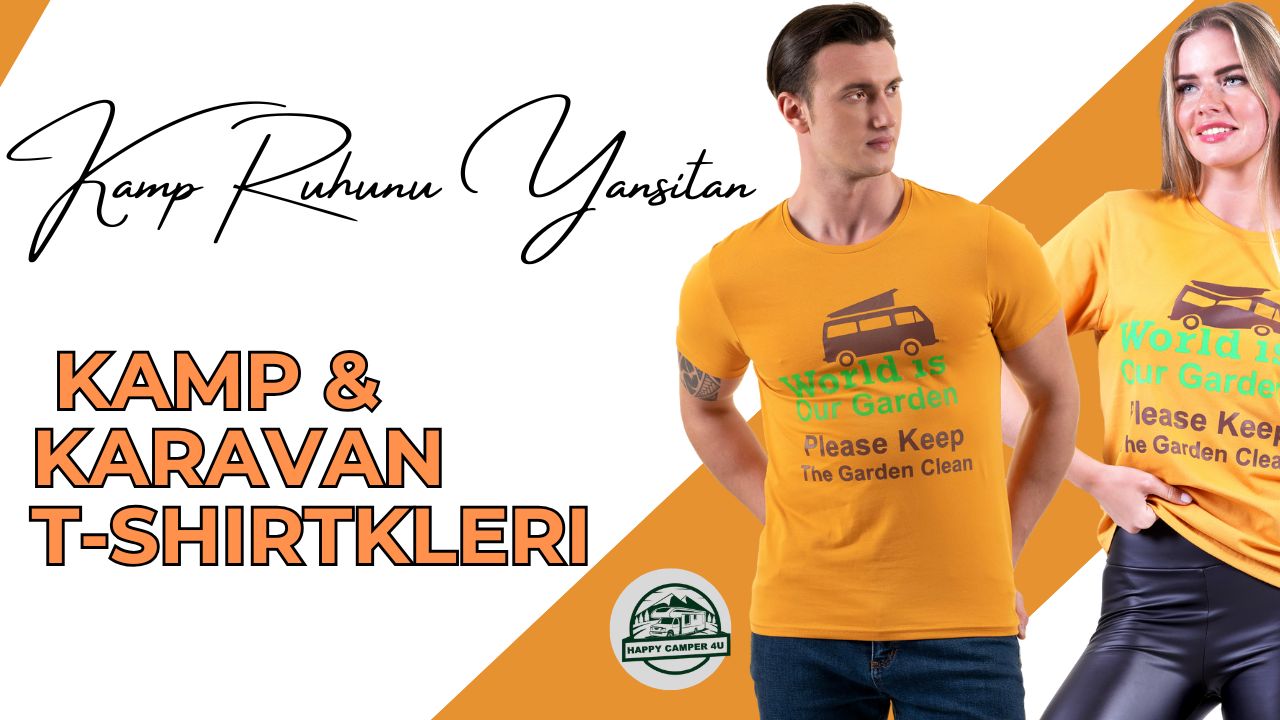 Hardal üzeri Karavan Kampçı Çevreci Temalı Bisiklet Yaka Unisex Tişört T-Shirt: MT0363