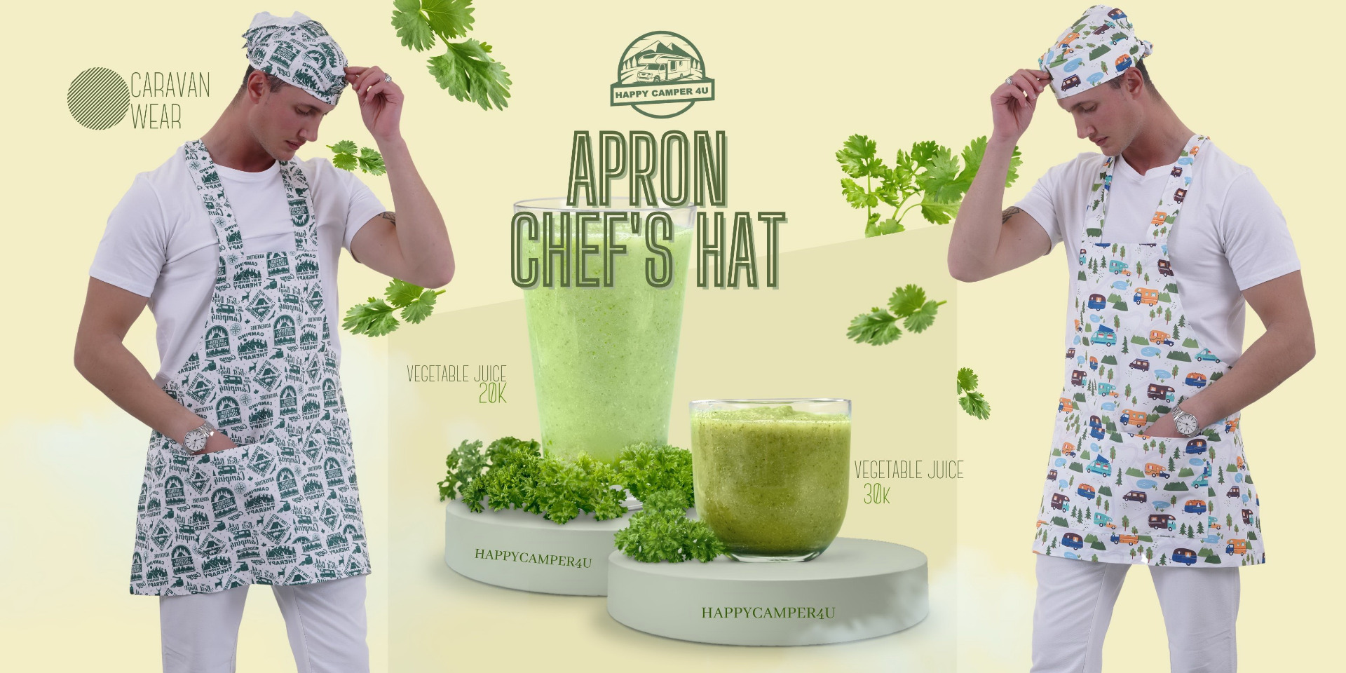 Laçivet Doğa Kamp Baskılı Karavancı Önlük Apron Şef Barista Aşçı Şapkalı Mutfak Set